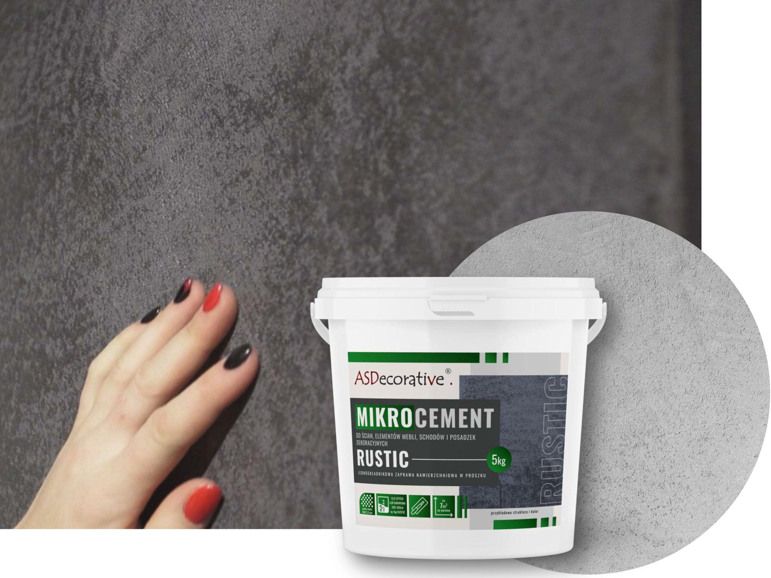 Mikrocement RUSTIC wybierany przez koneserów. W zależności od technik aplikacji, pozwala uzyskać powierzchnie strukturalne lub prawie całkiem gładkie o wyrazistym charakterze, zawsze z charakterystycznymi mikro wżerami.
