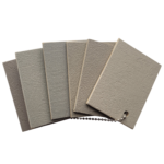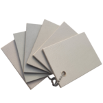 W palecie zaprezentowano próbki wykonane z mikrocementu FINO FAST oraz MEDIUM FAST. Na odwrocie każdego wzornika znajduje się etykieta z nazwą handlową użytego pigmentu,  dawka pigmentu potrzebna dla uzyskania danego koloru.