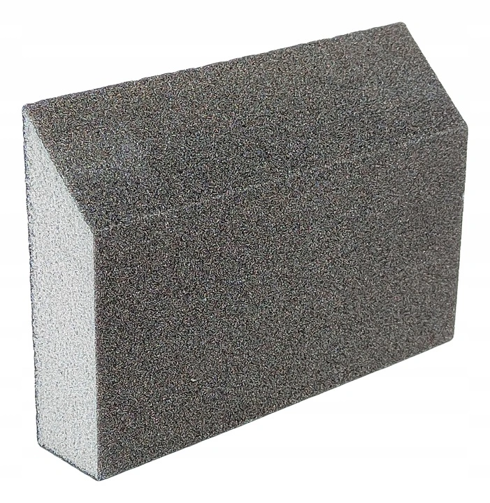 Kostka ścierna do szlifowania ręcznego z obsypem wykonanym z węglika krzemu. Przekrój gąbki trapezowy, trzy krawędzie mają kąt prosty i jedna krawędź kąt ostry. Przydatna w narożnikach wewnętrznych i zewnętrznych, oraz przy wykańczaniu detali.