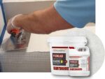 - Po wyschnięciu, wyszlifuj powierzchnię do uzyskania oczekiwanego efektu, papierem ściernym „40-80” lub padem diamentowym „50”, następnie dokładnie odpyl.